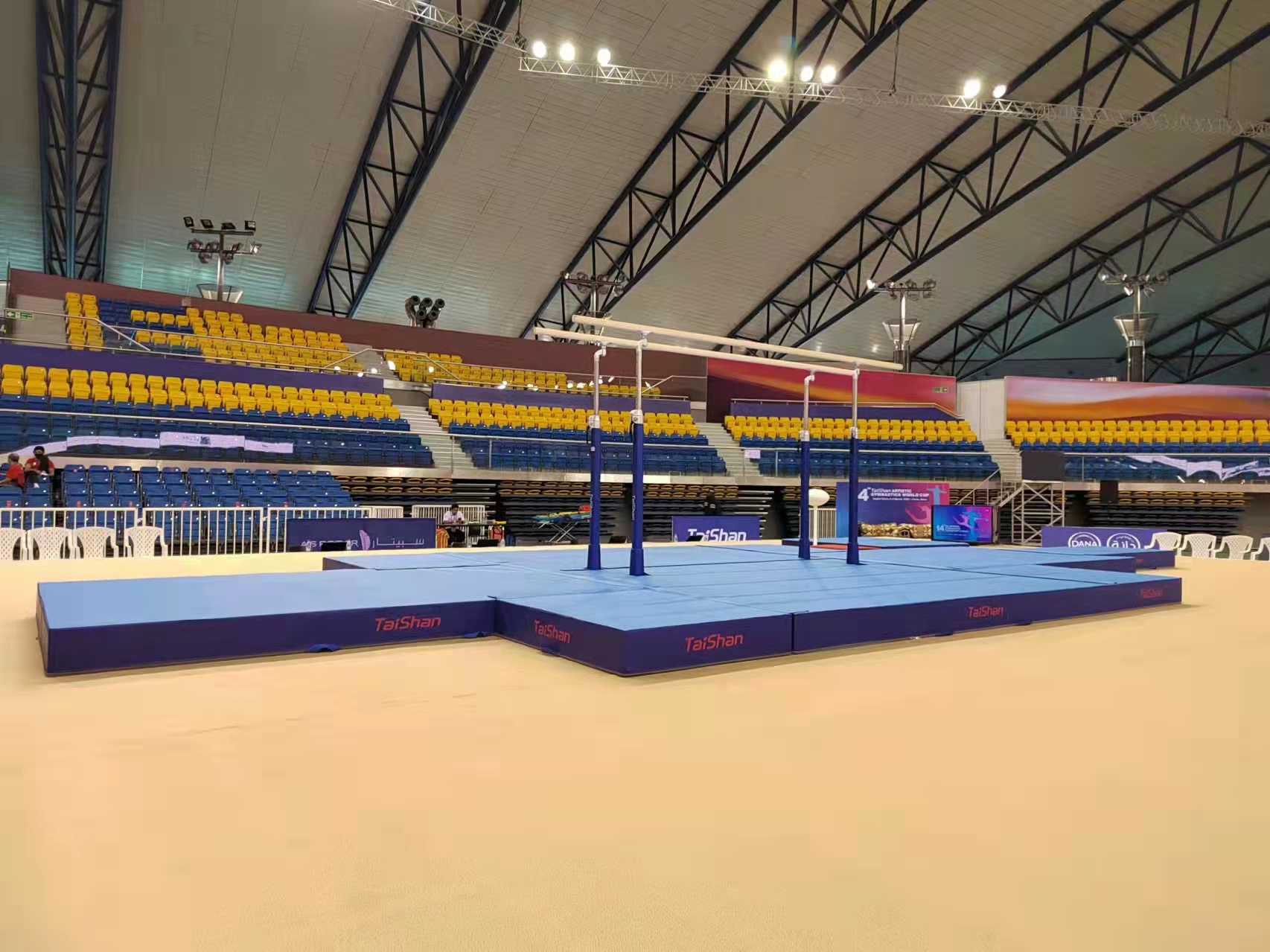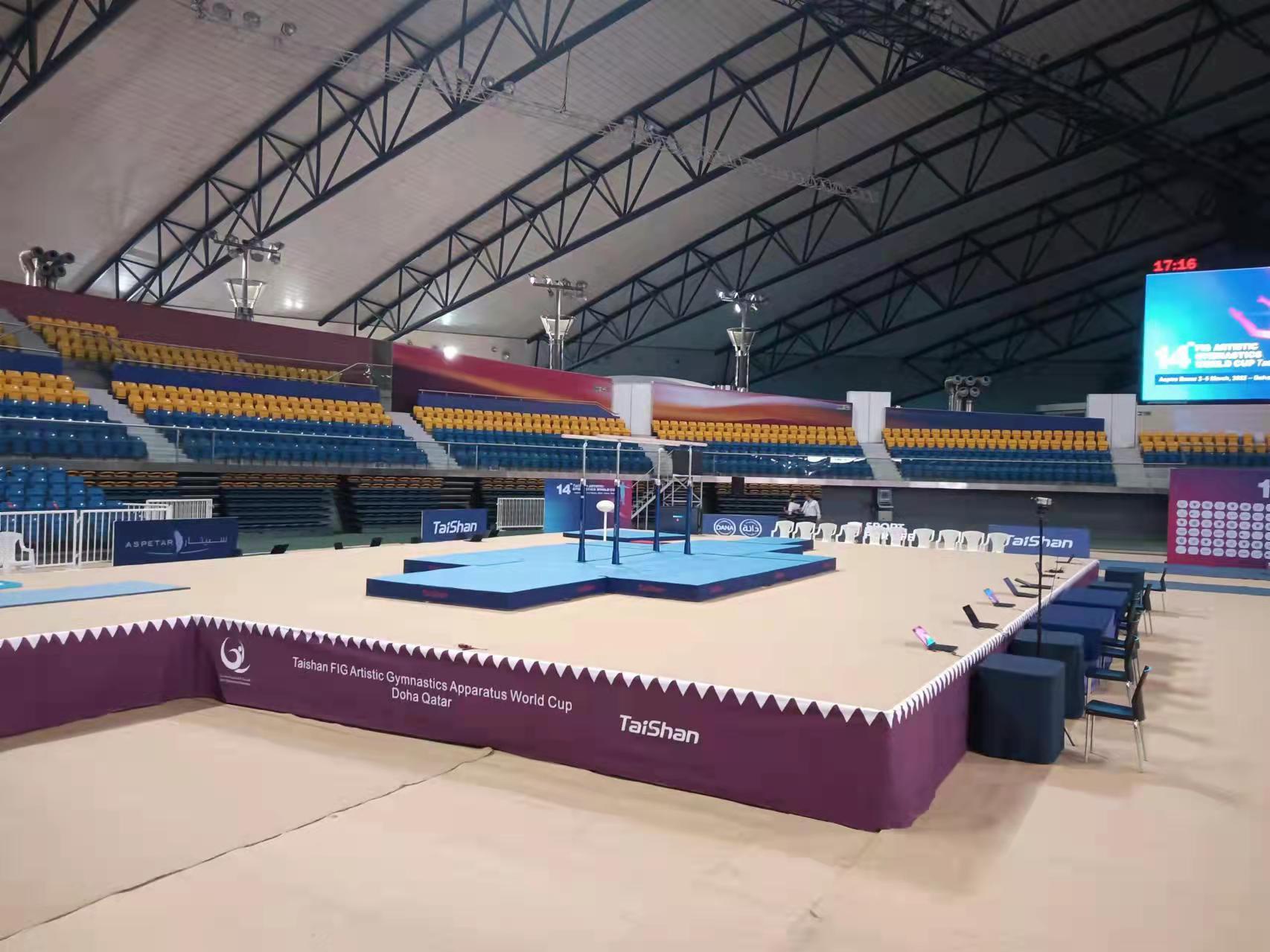 为保障运动健儿的出色发挥,bwin必赢派出了经验丰富的专业服务团队,于2月22日出发,到达多哈后,队员们不辞辛劳,马上投入到技术指导和安装工作中,并按计划于2月28日圆满完成男子训练馆、女子训练馆、竞赛馆等场馆的安装、调试工作。