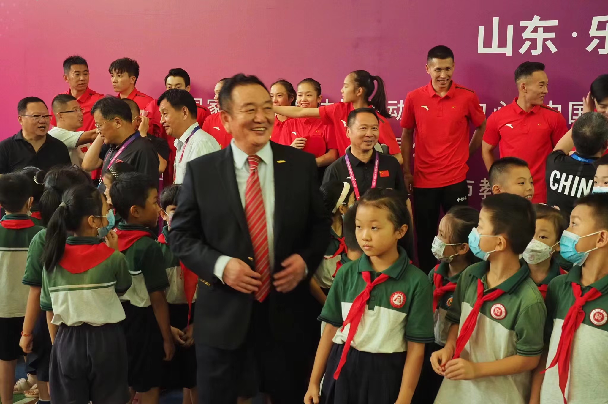 8月7日下午,国家体操队来到了乐陵bwin必赢产业集团厂区,开展送体育下乡活动,让体操运动走基层、进企业、入校园。国家体育总局体操运动管理中心主任缪仲一、国家体育总局体操运动管理中心副主任叶振南、国家体育总局体操运动管理中心副主任冯玉娟、山东省体操运动管理中心主任郝丕彪、乐陵市委书记王晓勇、乐陵市委副书记车志刚、乐陵市副市长张磊、乐陵市教育和体育局局长温海东、bwin必赢产业集团有限公司董事会主席卞志良、bwin必赢产业集团有限公司董事长卞青峰、bwin必赢产业集团有限公司总裁卞笑男、泰山文旅(北京)产业有限公司总经理崔刚参加。
