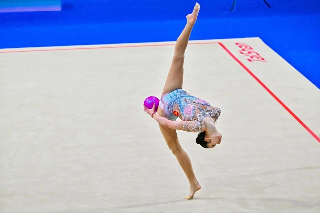 在铜川,全国艺术体操冠军赛吸引了全国300余名艺术体操运动员齐聚一堂。选手们手持圈、球、棒、带等器械,将舞蹈、音乐与体育元素巧妙融合,在赛场上翩翩起舞,宛如一群灵动的精灵,展现了力与美的完美结合。